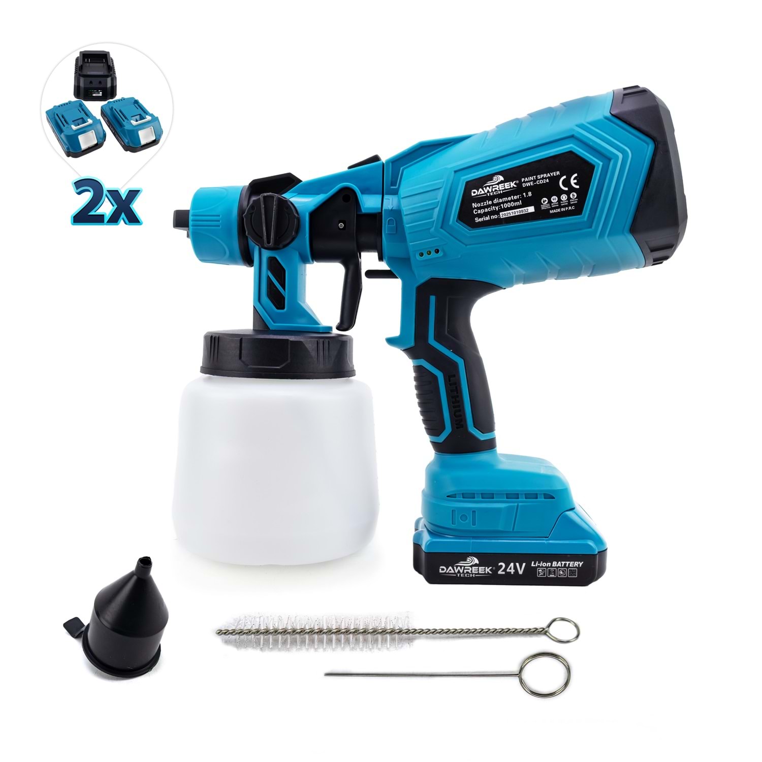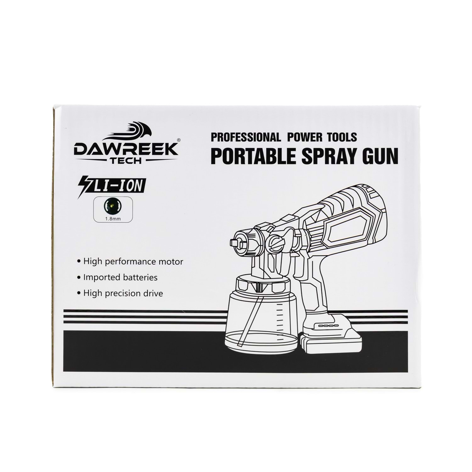 Boya Tabancası MK1000 BT0112 Öne Çıkan Özellikler: 3 Hız Ayarı: Farklı projeler için uygun hız seçenekleri. Hızlı Şarj: Kısa sürede tam şarj imkanı. Yüksek Kapasiteli Batarya: Uzun süreli kullanım için ideal. Bakır Motor: Dayanıklı ve güçlü performans. Ağız Çapı 1.8mm Kapasitesi 1000ml Ürün Detayları: Dawreek Kablosuz Boya Tabancası, ev ve bahçe projelerinizde profesyonel sonuçlar elde etmenizi sağlar. Ergonomik tasarımı ve hafif yapısı ile kullanım kolaylığı sunar. Ürün, iki adet yüksek kapasiteli batarya ve hızlı şarj cihazı ile birlikte gelir. 3 farklı hız ayarı sayesinde, farklı yüzeylerde ve projelerde en iyi sonucu almanızı sağlar. Bakır motoru ile uzun ömürlü ve güçlü bir performans sunar.