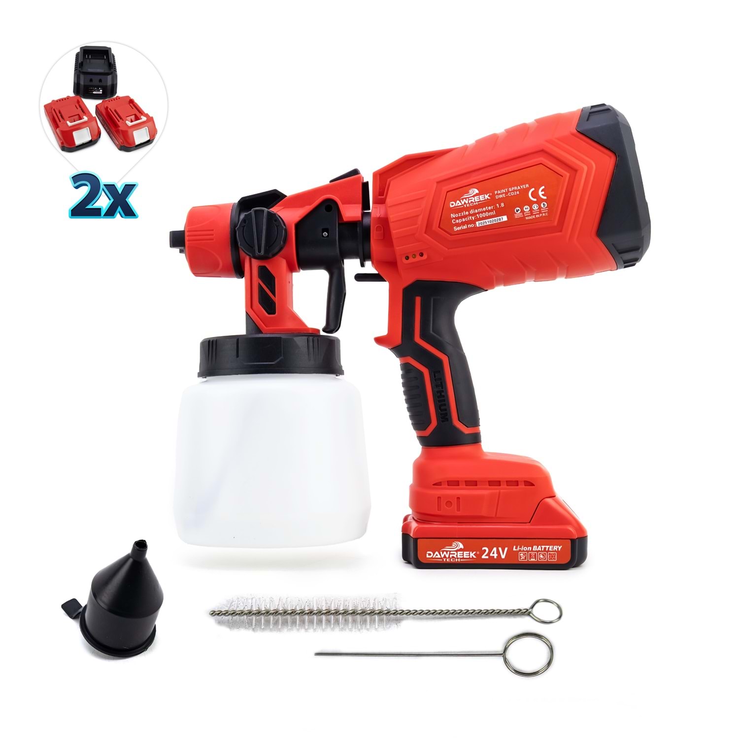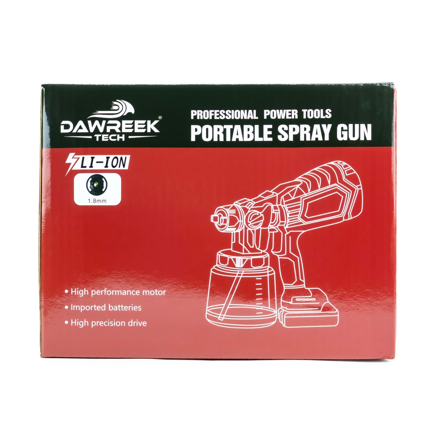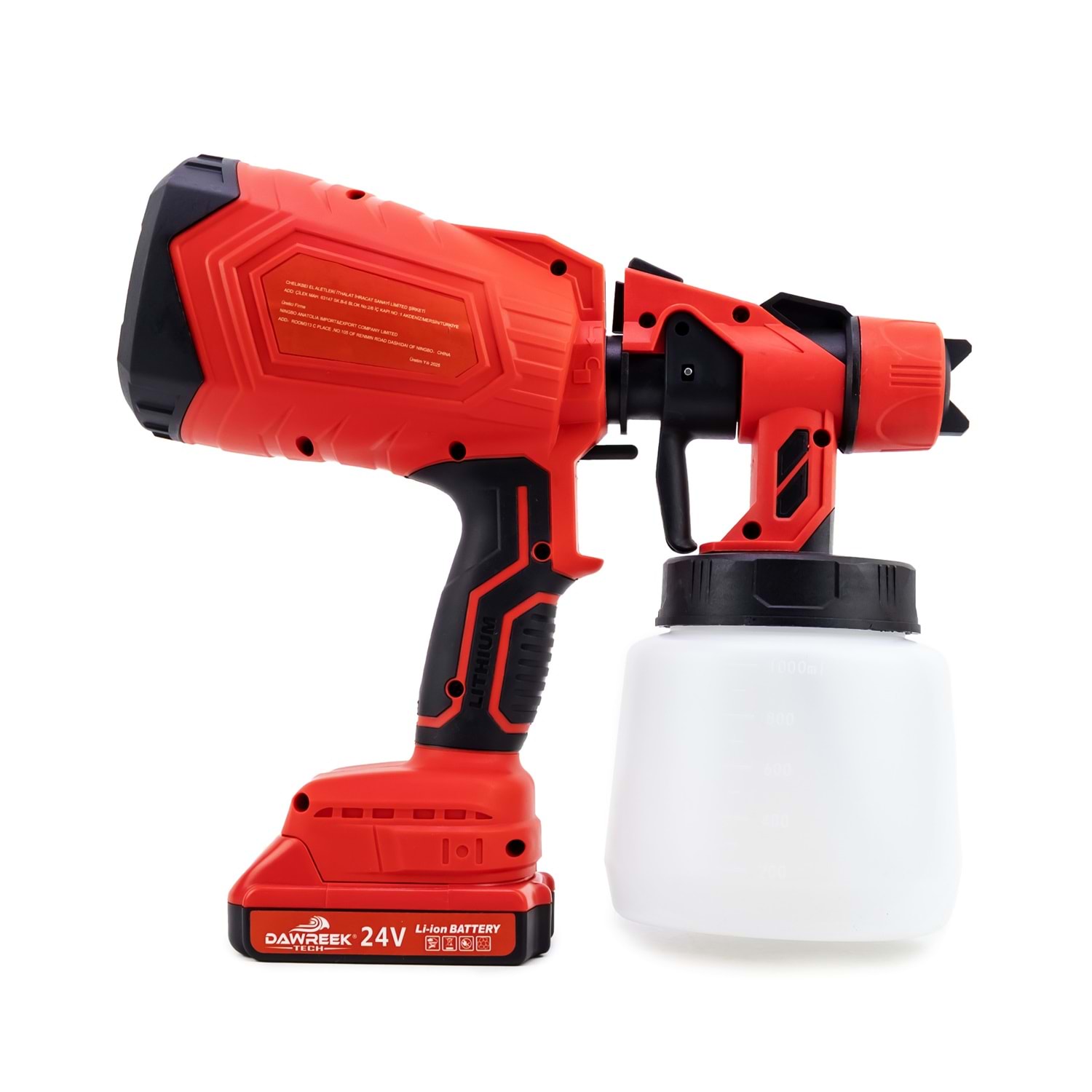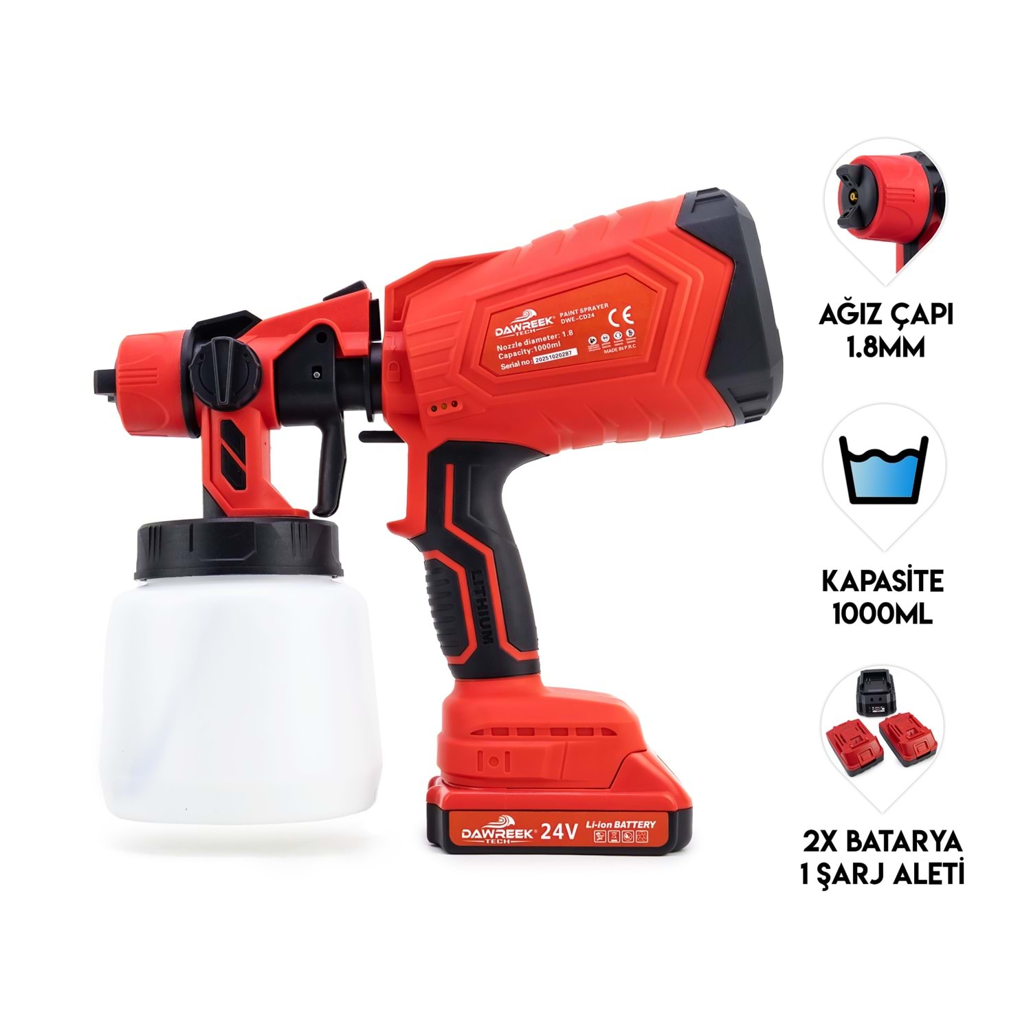 Boya Tabancası MW1000 BT0114 Öne Çıkan Özellikler: 3 Hız Ayarı: Farklı projeler için uygun hız seçenekleri. Hızlı Şarj: Kısa sürede tam şarj imkanı. Yüksek Kapasiteli Batarya: Uzun süreli kullanım için ideal. Bakır Motor: Dayanıklı ve güçlü performans. Ağız Çapı 1.8mm Kapasitesi 1000ml Ürün Detayları: Dawreek Kablosuz Boya Tabancası, ev ve bahçe projelerinizde profesyonel sonuçlar elde etmenizi sağlar. Ergonomik tasarımı ve hafif yapısı ile kullanım kolaylığı sunar. Ürün, iki adet yüksek kapasiteli batarya ve hızlı şarj cihazı ile birlikte gelir. 3 farklı hız ayarı sayesinde, farklı yüzeylerde ve projelerde en iyi sonucu almanızı sağlar. Bakır motoru ile uzun ömürlü ve güçlü bir performans sunar.