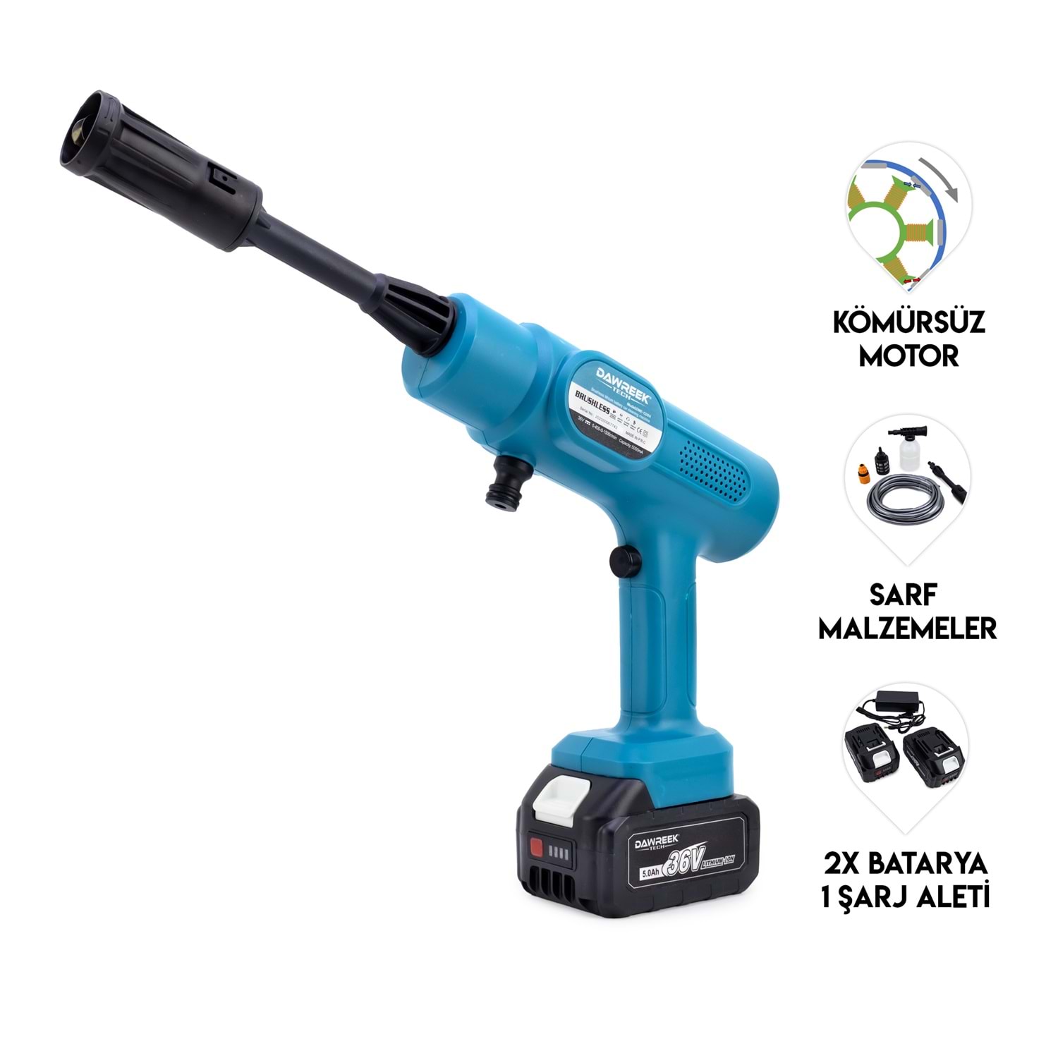 Şarjlı Oto Yıkama Makinesi MK36-BL – 2 Batarya + Şarj Aleti Araç temizliğinde profesyonel çözümler sunan şarjlı oto yıkama makinesi, güçlü motoru ve ergonomik tasarımıyla hem pratik hem de etkili bir kullanım sağlar. 1500 RPM motor gücü sayesinde yüksek basınçlı su püskürtme imkânı sunar. Araç, motosiklet, bisiklet, bahçe mobilyaları, cam yüzeyler ve günlük temizlik işlerinizde güvenle kullanabilirsiniz. Ürün Özellikleri: •1500 RPM güçlü motor •Kablosuz kullanım için 2 adet 36V batarya •1 adet hızlı şarj cihazı •Kömürsüz Motor Teknolojisi ve ergonomik tasarım •Dayanıklı gövde ve uzun ömürlü kullanım •Sarf malzemeleri ve bağlantı aparatı dahil Kullanım Alanları: •Araç ve motosiklet yıkama •Bisiklet, scooter ve bahçe ekipmanları temizliği •Ev dış cephe ve cam yıkama •Bahçe mobilyaları ve teras temizliği Şarjlı yapısı sayesinde priz arama derdine son verir. Uzun ömürlü bataryaları ile dilediğiniz her yerde kolayca temizlik yapabilirsiniz.