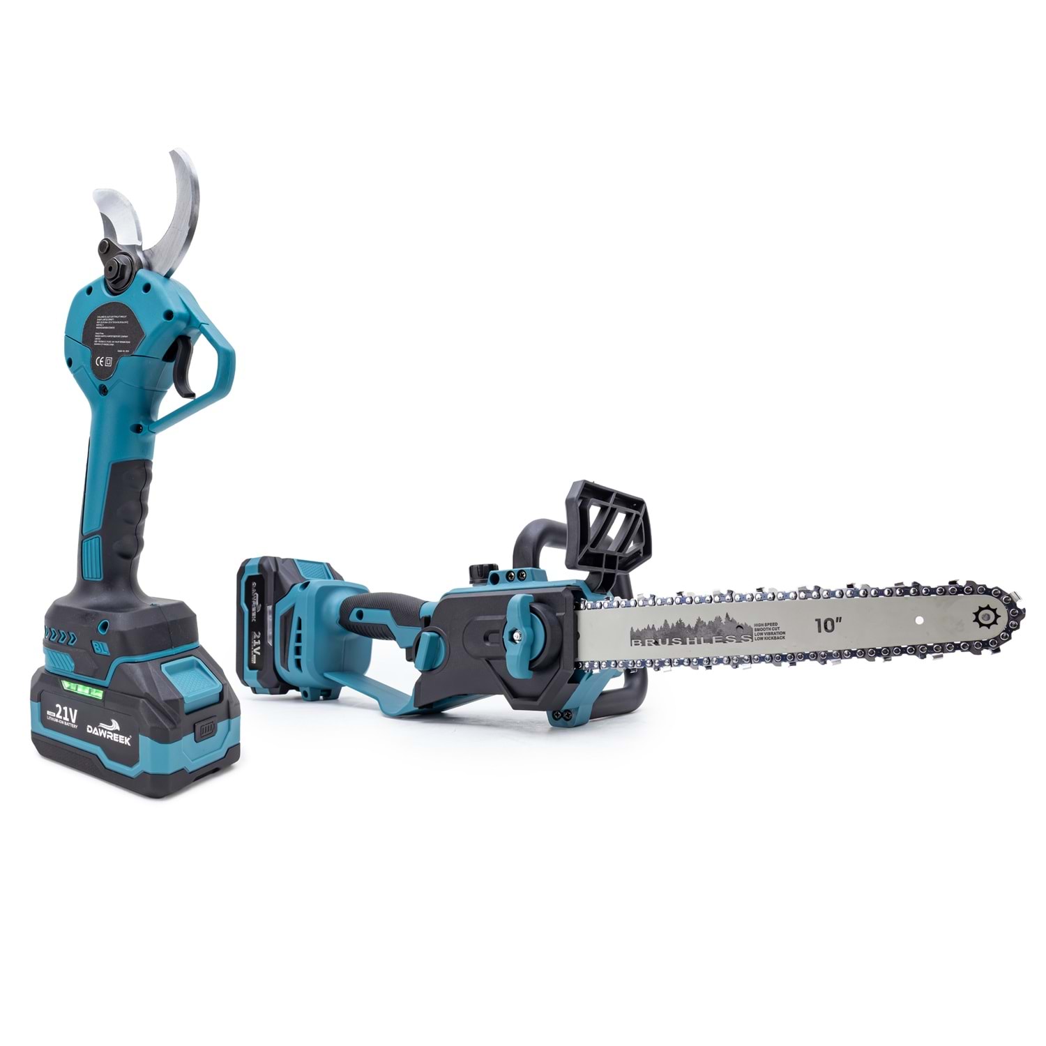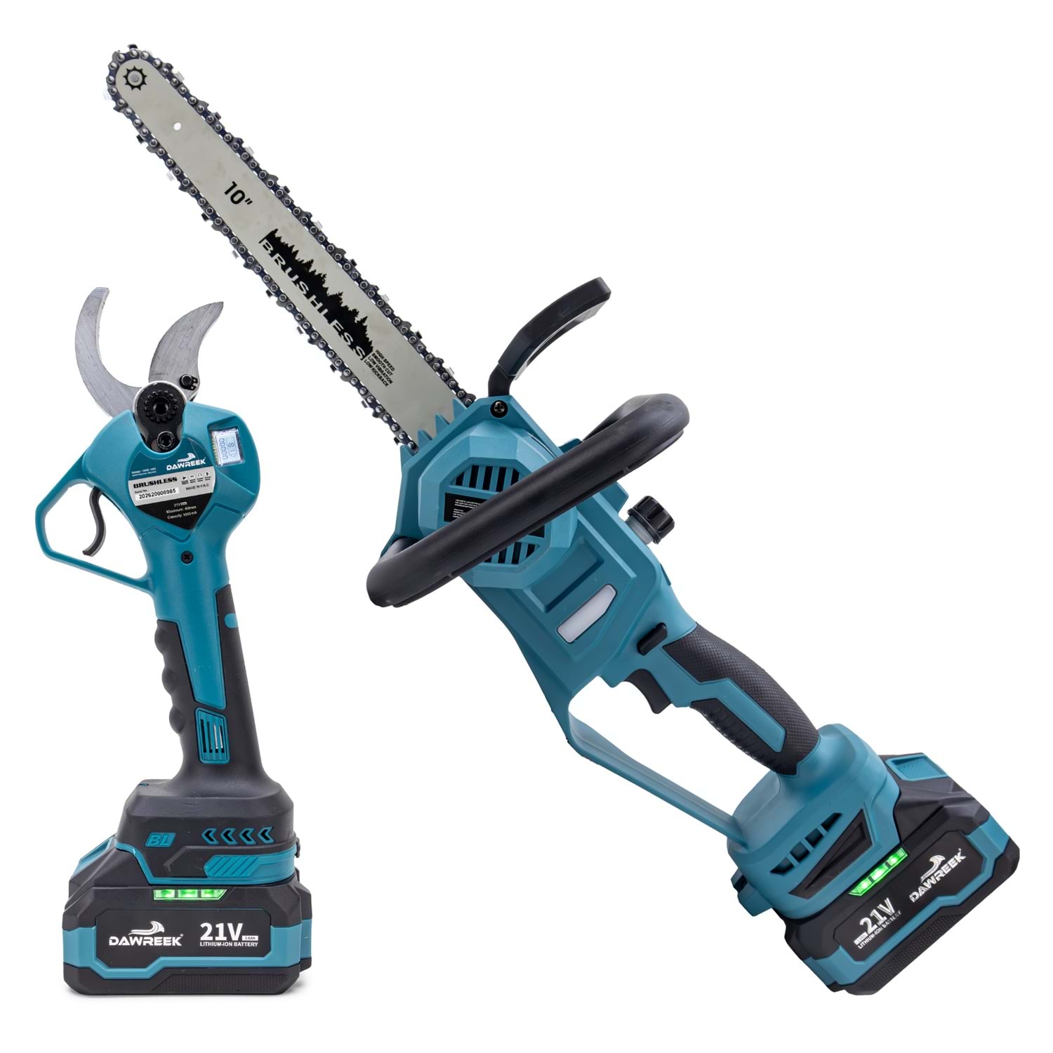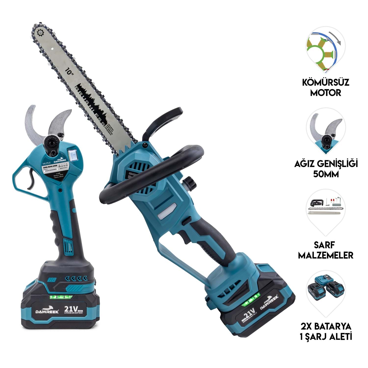 Dawreek BT0245 Bağ Makası + Ağaç Kesme MK10 İkili Budama Seti Bahçe bakımında hız, güç ve pratiklik arayanlar için tasarlandı! Dawreek BT0245 ikili budama seti, hem hassas budama hem de güçlü kesim işlemlerini tek pakette sunar. Ürün İçeriği Kablosuz Elektrikli Bağ Makası 10” (MK10) Şarjlı Ağaç Kesme Testeresi 2 Adet 21V Yüksek Kapasiteli Batarya 1 Adet Hızlı Şarj Aleti Öne Çıkan Özellikler Kömürsüz Motor Teknolojisi: Daha uzun ömür, yüksek performans ve düşük enerji tüketimi Kablosuz Kullanım: Kablo derdi olmadan özgür çalışma imkanı Güçlü Kesim Performansı: Kalın dallarda bile zorlanmadan kesim Ergonomik Tasarım: Uzun süreli kullanımlarda bile konfor sağlar Çift Batarya Avantajı: Kesintisiz çalışma için yedek güç