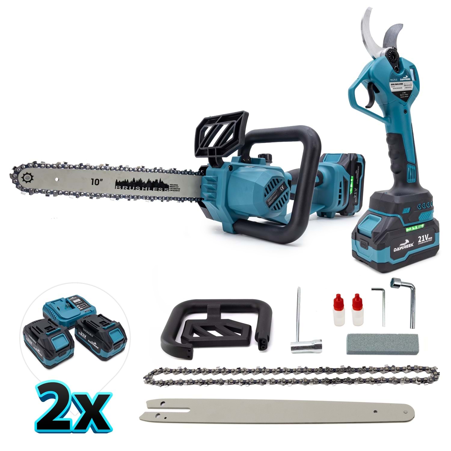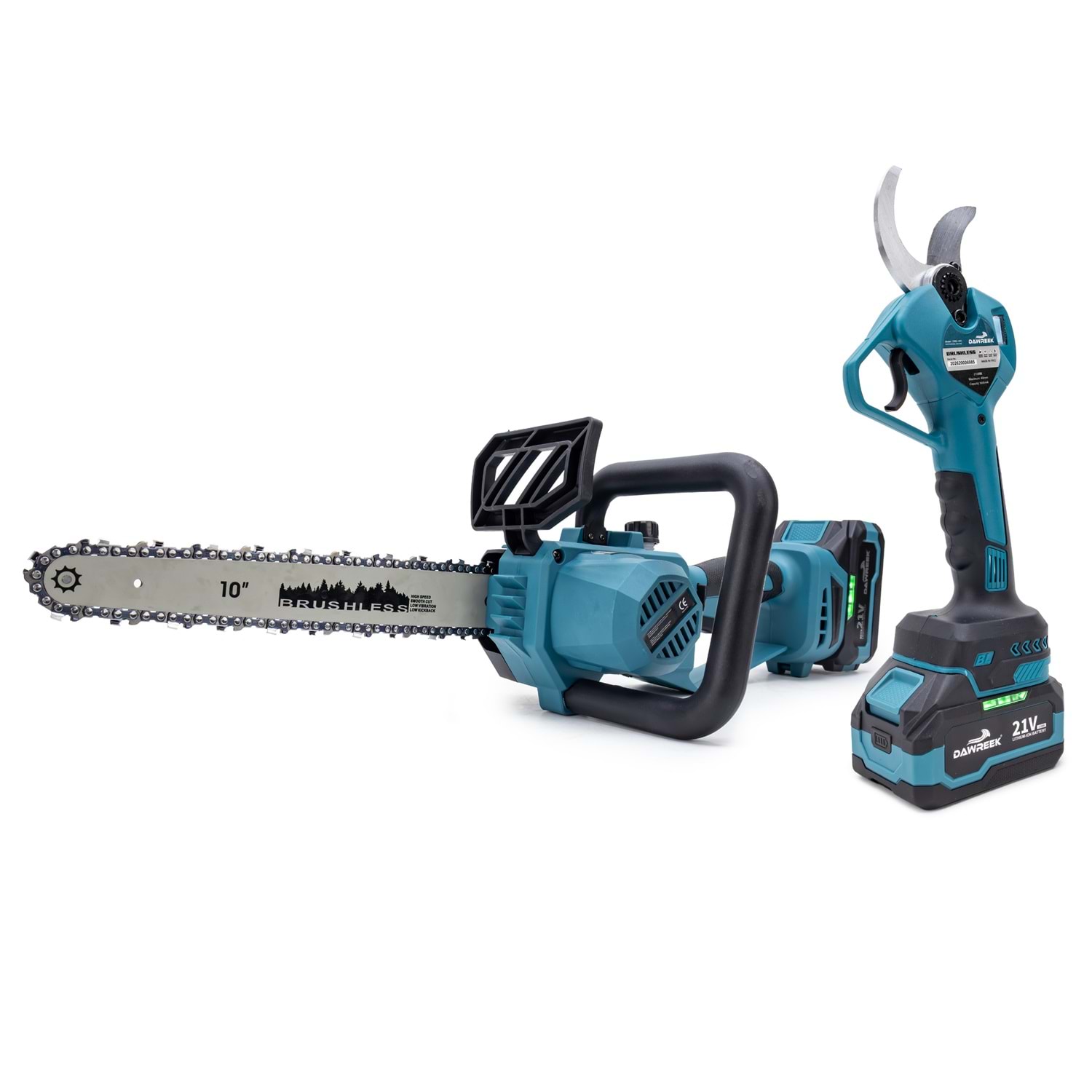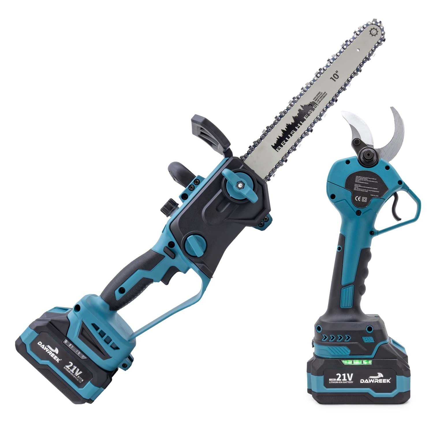 Dawreek BT0245 Bağ Makası + Ağaç Kesme MK10 İkili Budama Seti Bahçe bakımında hız, güç ve pratiklik arayanlar için tasarlandı! Dawreek BT0245 ikili budama seti, hem hassas budama hem de güçlü kesim işlemlerini tek pakette sunar. Ürün İçeriği Kablosuz Elektrikli Bağ Makası 10” (MK10) Şarjlı Ağaç Kesme Testeresi 2 Adet 21V Yüksek Kapasiteli Batarya 1 Adet Hızlı Şarj Aleti Öne Çıkan Özellikler Kömürsüz Motor Teknolojisi: Daha uzun ömür, yüksek performans ve düşük enerji tüketimi Kablosuz Kullanım: Kablo derdi olmadan özgür çalışma imkanı Güçlü Kesim Performansı: Kalın dallarda bile zorlanmadan kesim Ergonomik Tasarım: Uzun süreli kullanımlarda bile konfor sağlar Çift Batarya Avantajı: Kesintisiz çalışma için yedek güç