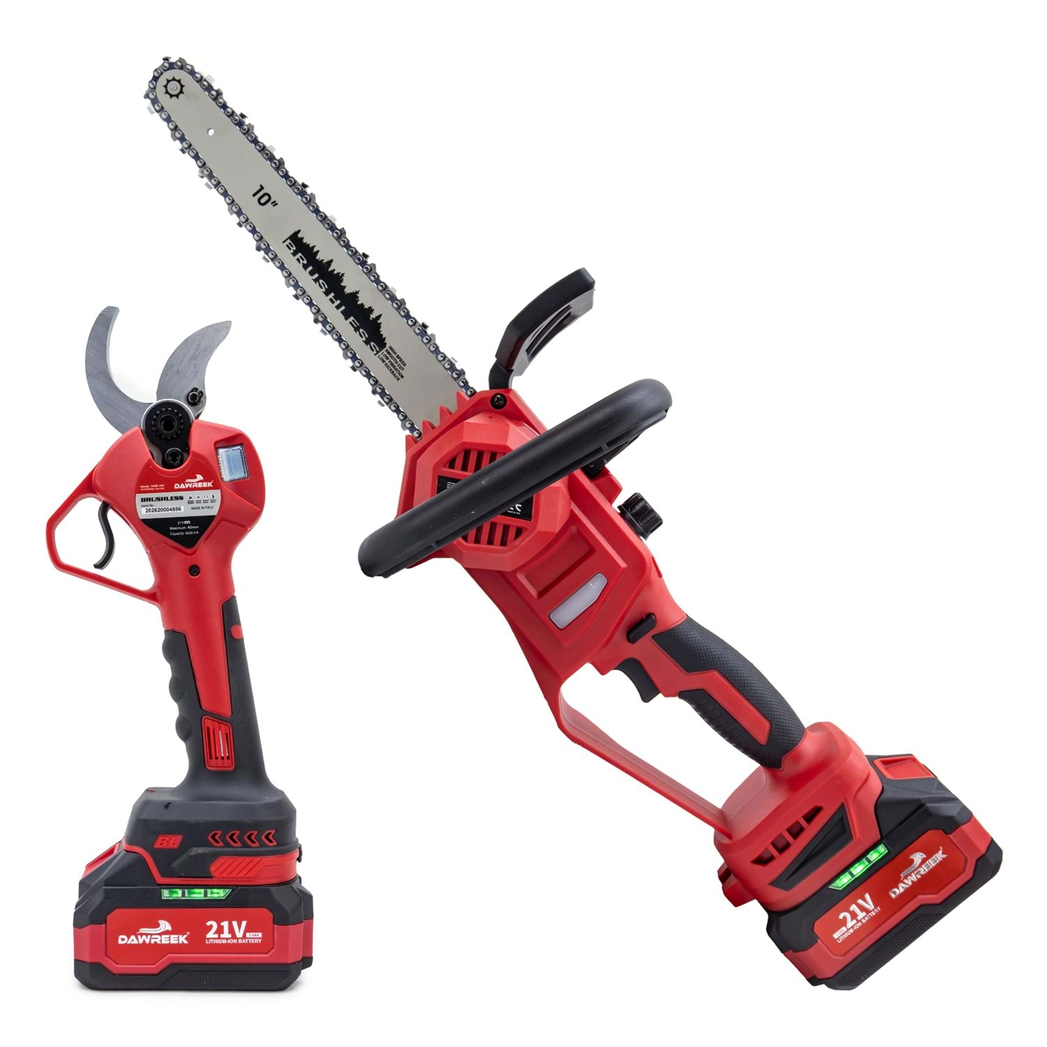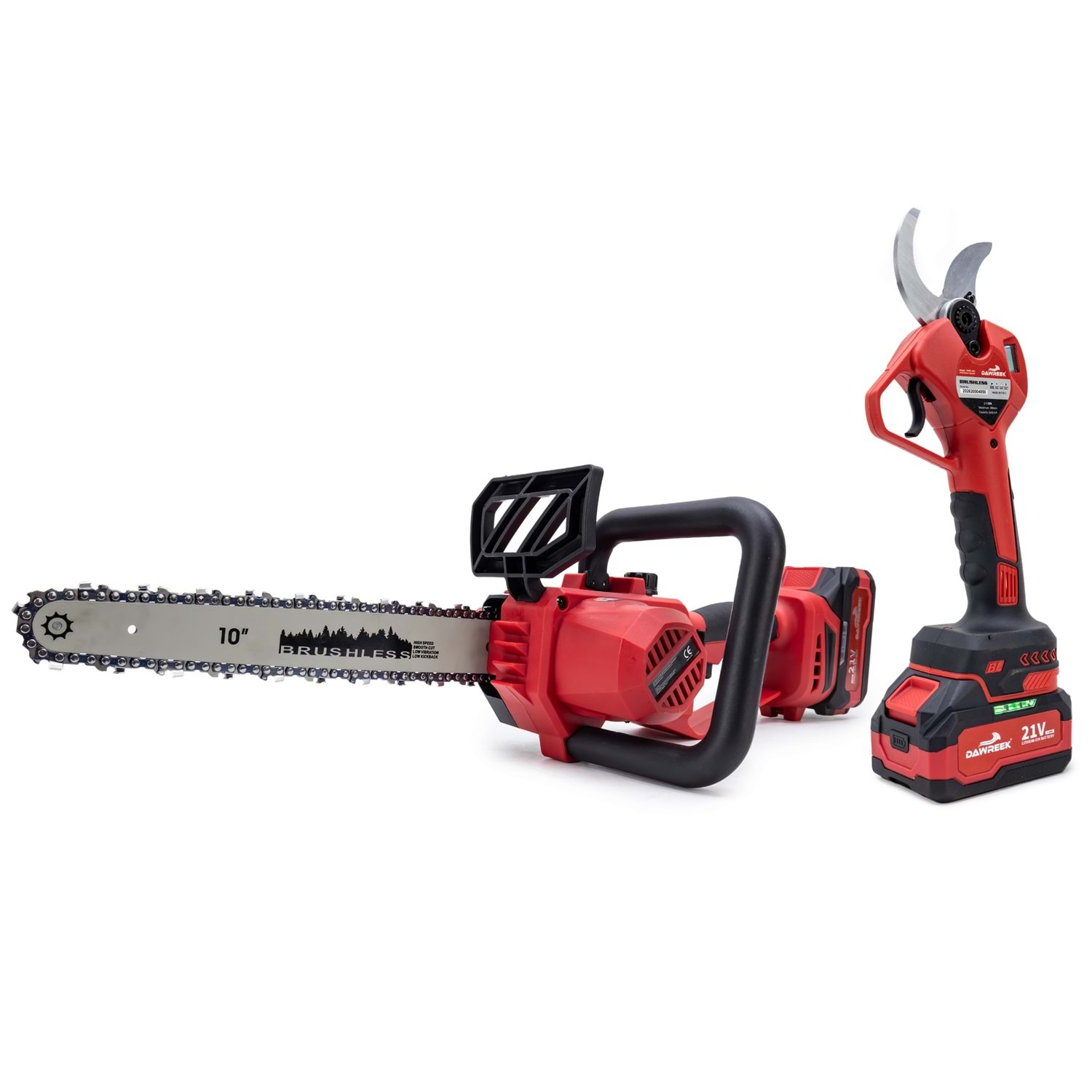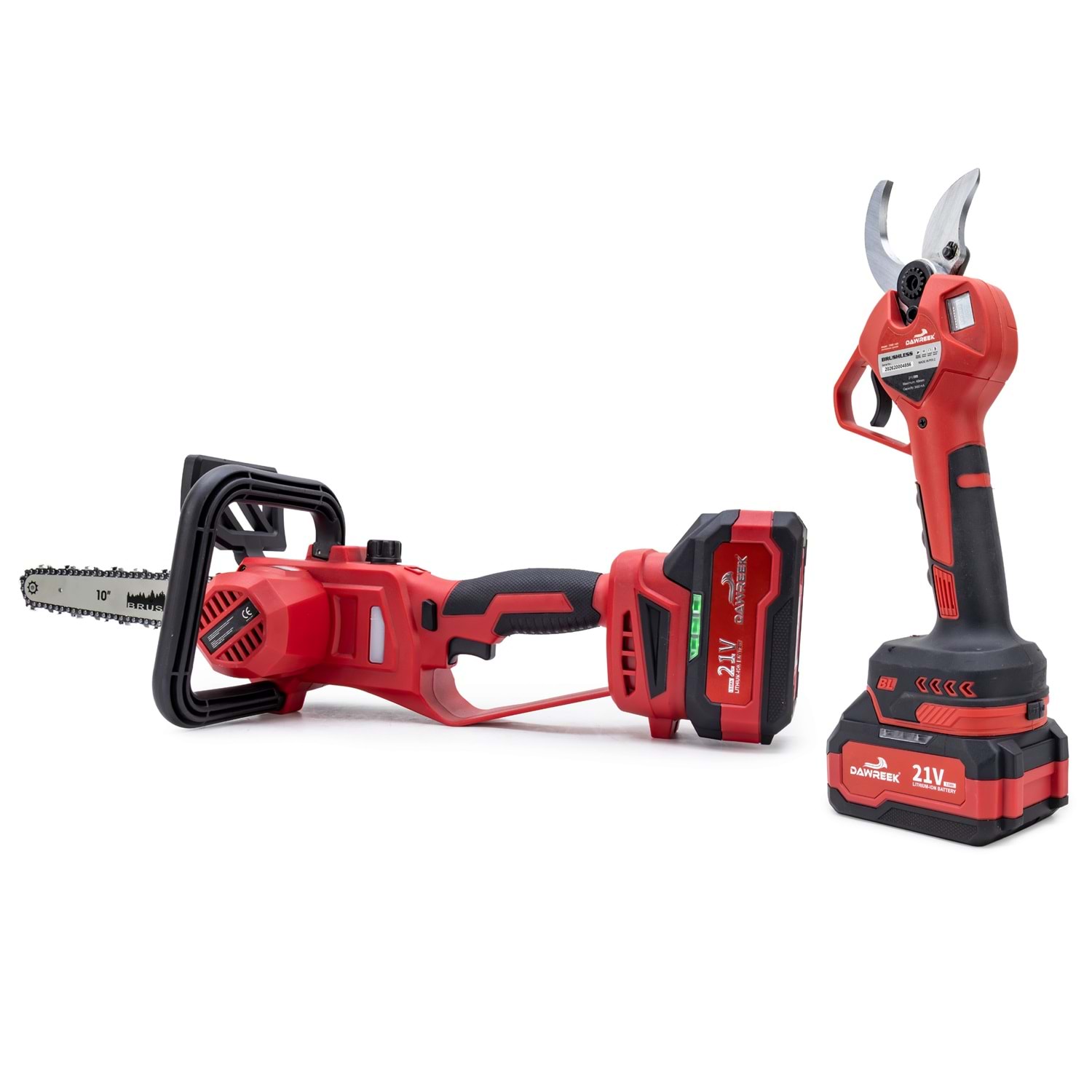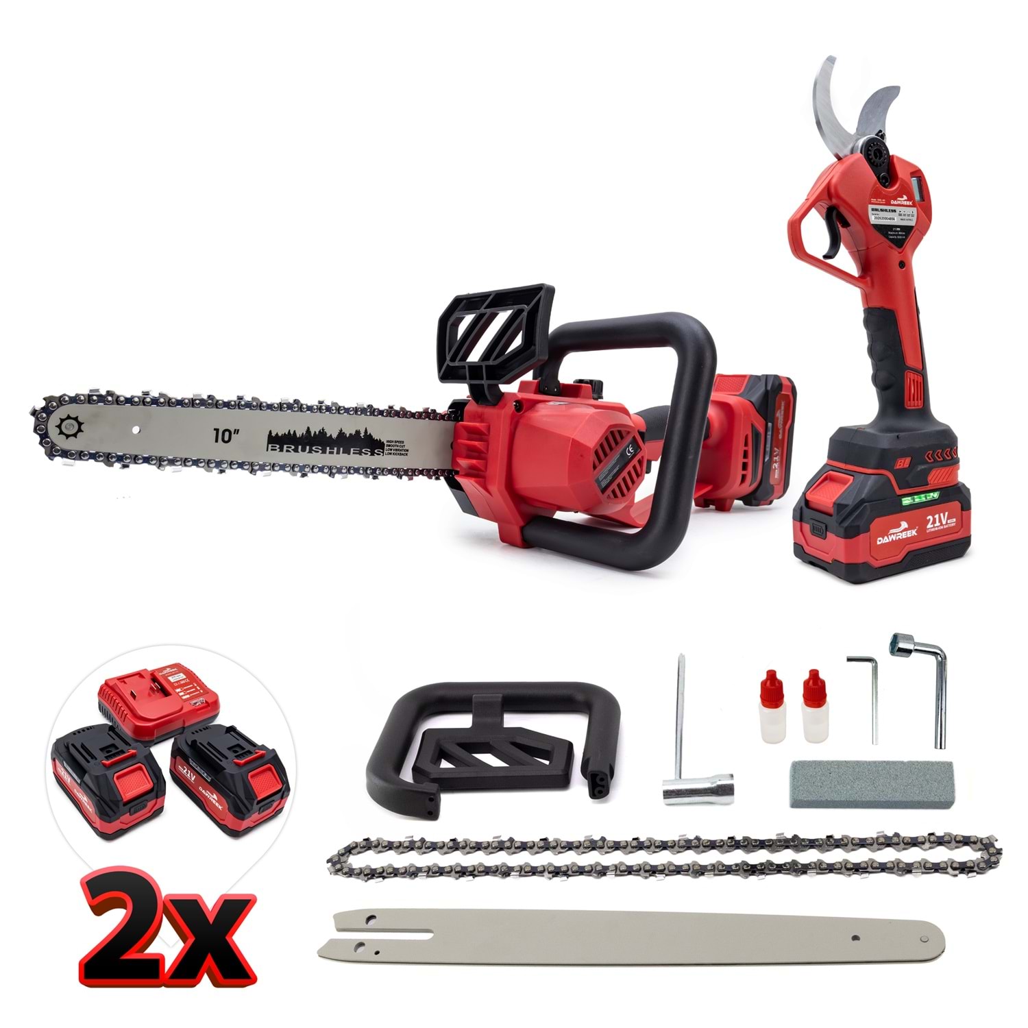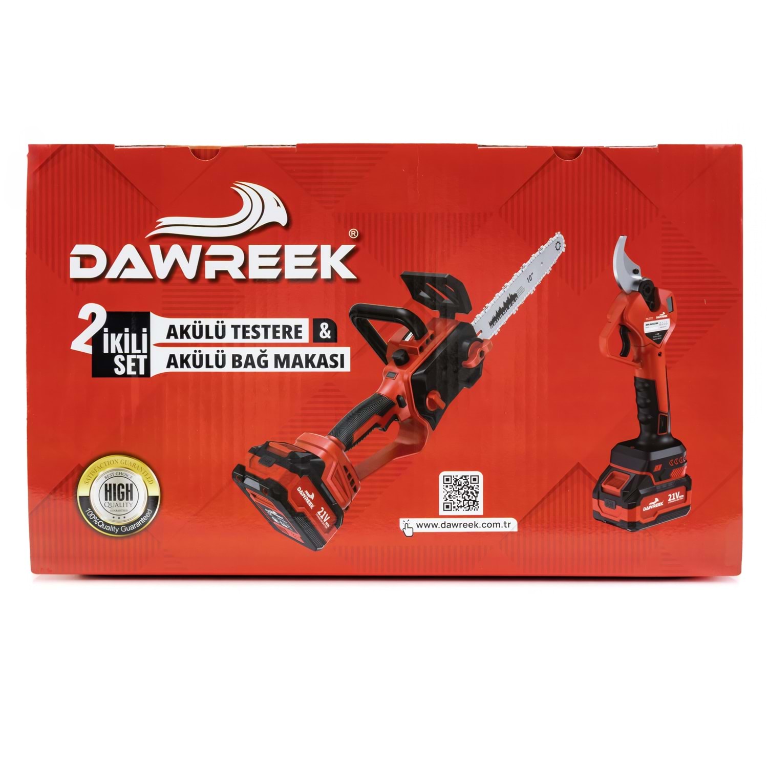Dawreek BT0246 Bağ Makası + Ağaç Kesme MW10 İkili Budama Seti Bahçe bakımında hız, güç ve pratiklik arayanlar için tasarlandı! Dawreek BT0246 ikili budama seti, hem hassas budama hem de güçlü kesim işlemlerini tek pakette sunar. Ürün İçeriği Kablosuz Elektrikli Bağ Makası 10” (MW10) Şarjlı Ağaç Kesme Testeresi 2 Adet 21V Yüksek Kapasiteli Batarya 1 Adet Hızlı Şarj Aleti Öne Çıkan Özellikler Kömürsüz Motor Teknolojisi: Daha uzun ömür, yüksek performans ve düşük enerji tüketimi Kablosuz Kullanım: Kablo derdi olmadan özgür çalışma imkanı Güçlü Kesim Performansı: Kalın dallarda bile zorlanmadan kesim Ergonomik Tasarım: Uzun süreli kullanımlarda bile konfor sağlar Çift Batarya Avantajı: Kesintisiz çalışma için yedek güç