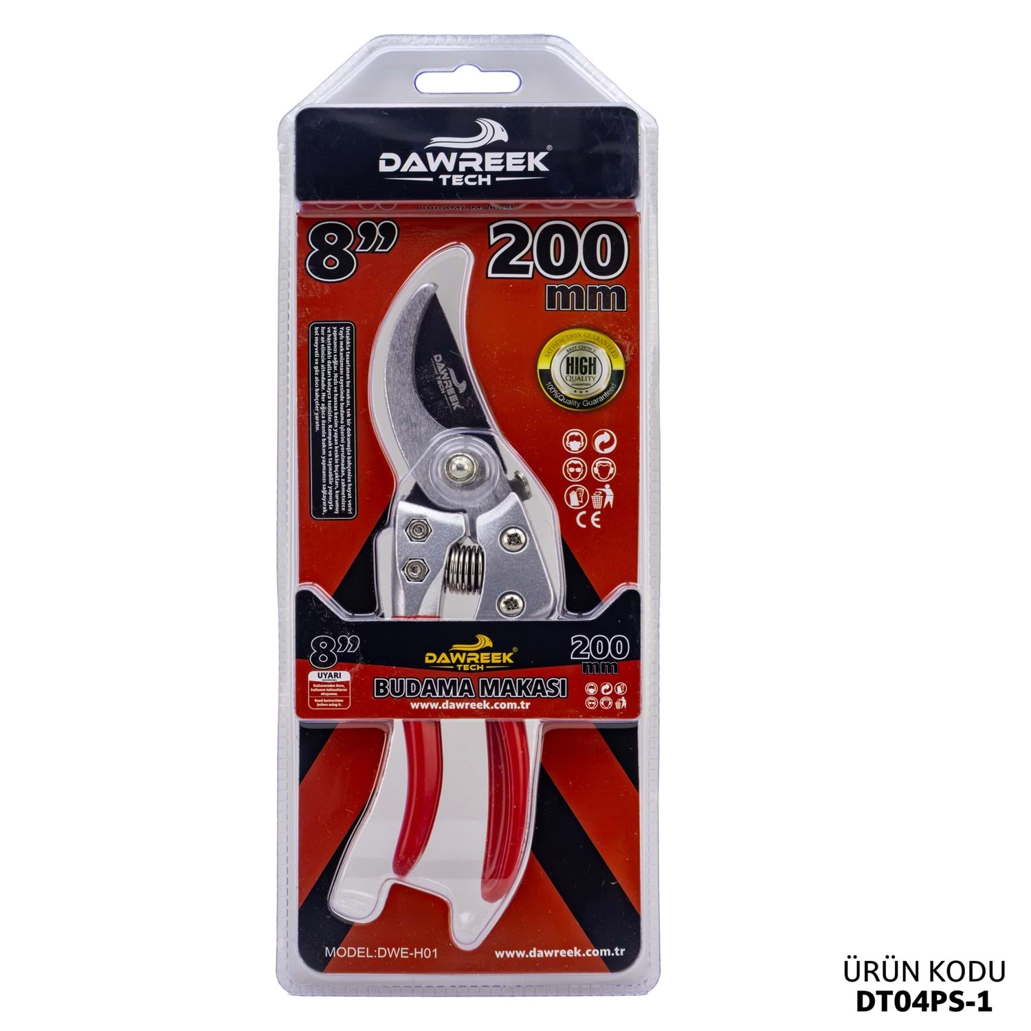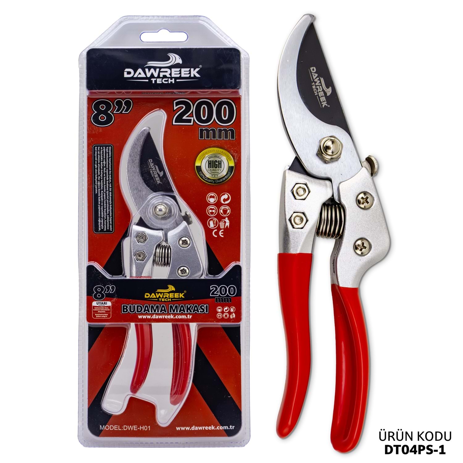 DAWREEK TECH 8” (200 mm) Budama Makası – DT04PS-1 Bahçe bakımında profesyonel sonuçlar elde etmek isteyenler için tasarlanan Dawreek Tech budama makası, güçlü yapısı ve ergonomik tasarımıyla işlerinizi kolaylaştırır. Hem amatör kullanıcılar hem de profesyoneller için ideal bir yardımcıdır. Ürün Özellikleri: Boyut: 8 inç (200 mm) Keskin ve Dayanıklı Bıçak: Yüksek kaliteli çelikten üretilmiş, uzun süre keskinliğini korur Güçlü Yay Mekanizması: Daha az eforla daha fazla kesim imkanı Ergonomik Sap Tasarımı: Uzun süreli kullanımlarda bile el yorgunluğunu azaltır Kilitleme Mekanizması: Güvenli kullanım ve kolay saklama sağlar Dayanıklı Gövde: Yoğun kullanıma uygun sağlam yapı