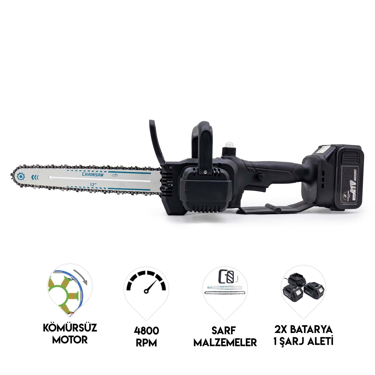 CHELIKBEI MKD12 Şarjlı Ağaç Kesme CB0143 MKD12, yüksek performanslı ve taşınabilir bir şarjlı ağaç kesme cihazıdır. Bu cihaz, çeşitli ağaç kesme ve budama işlemlerinde kullanılmak üzere tasarlanmıştır. MKD12’nin öne çıkan özellikleri: Kömürsüz Motor: Kömürsüz motor teknolojisi, daha uzun ömür ve daha az bakım gerektirir, aynı zamanda daha verimli bir performans sunar. Yedek Bilezik: Cihaz, yedek bilezik ile birlikte gelir, böylece kesme işlemlerinizde kesintisiz çalışabilirsiniz. Çift Bakım: Çift bakım özelliği sayesinde cihazın bakımını kolayca yapabilir ve uzun ömürlü kullanım sağlayabilirsiniz. Ergonomik Tasarım: Hafif ve ergonomik yapısı sayesinde kullanıcıya rahatlık sunar ve uzun süreli kullanımlarda bile konfor sağlar. Güçlü Batarya: Yüksek kapasiteli bataryası ile uzun süreli kesme işlemlerinde bile kesintisiz performans sunar. Güvenli Kullanım: Güvenlik özellikleri ile donatılmış olup, kullanıcıyı olası kazalardan korur. MKD12 şarjlı ağaç kesme cihazı, hem profesyonel hem de ev kullanımı için ideal bir çözümdür. Ağaç kesme ve budama işlerinizi kolaylaştırmak için mükemmel bir yardımcıdır.