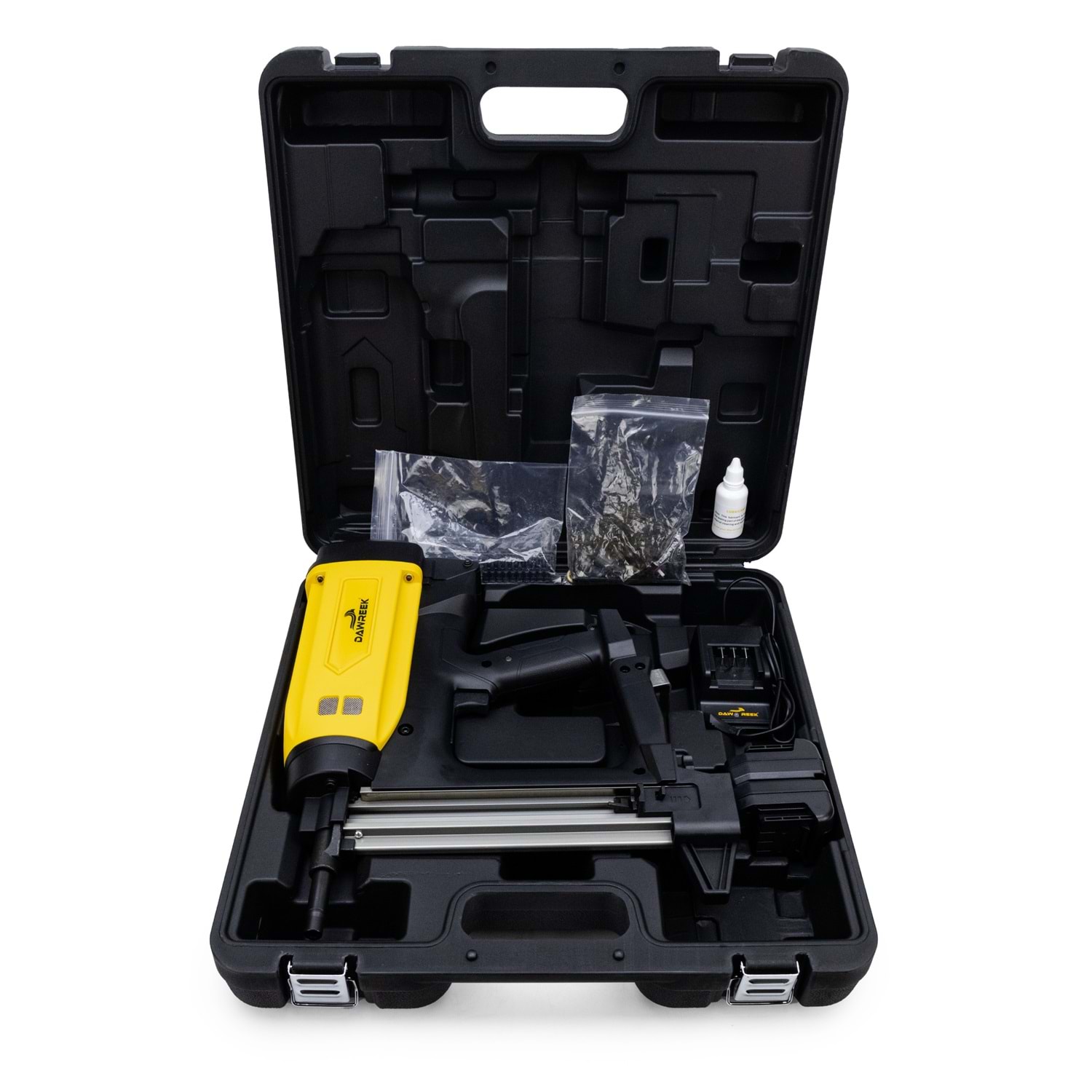 DAWREEK Şarjlı + Gazlı Çivi Çakma Makinesi BT0239 Elektrik kablosu olmadan sahada maksimum performans! Gaz + Batarya Gücü Dengeli sistem sayesinde güçlü ve stabil çakma performansı! Yüksek Performans Ahşap, alçıpan ve montaj işlerinde hızlı ve sağlam sonuçlar! 154 MM Gaz Tüpü Kesintisiz ve güçlü kullanım avantajı! Çift Batarya (2x 2000 mAh) Uzun süreli çalışma, yarım kalan iş yok! 1000 Çivi Kapasitesi Tek dolumda yüksek verim, maksimum hız! Teknik Özellikler Çivi uzunluğu: 15 mm – 40 mm Çivi sap çapı: 2.6 mm – 3.0 mm Çivi baş çapı: 6.3 mm
