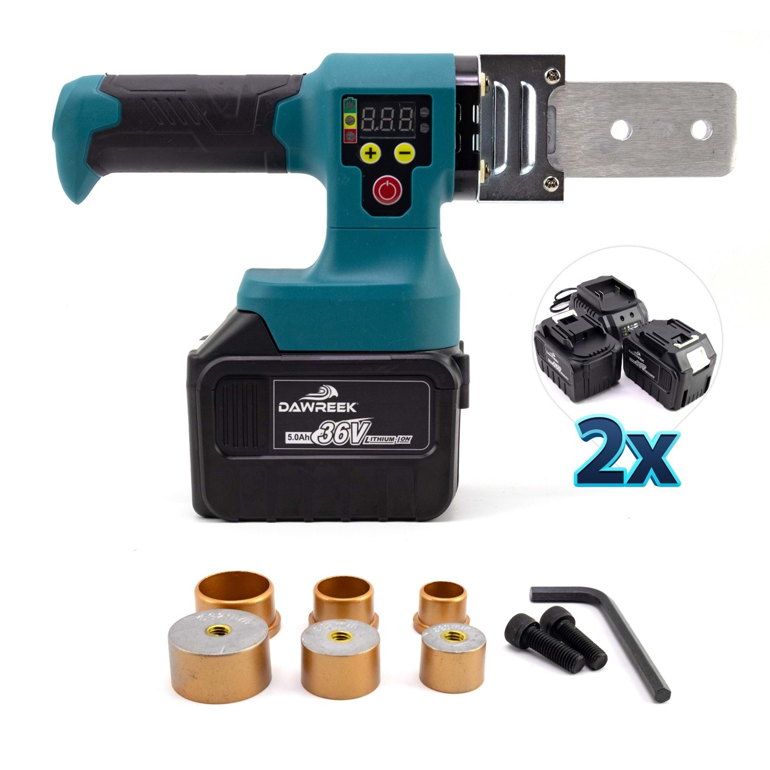 DAWREEK Boru Lehim Makinesi PPR15 BT0078 PPR15 boru lehim makinesi, profesyonel ve amatör kullanıcılar için tasarlanmış, yüksek performanslı bir kaynak makinesidir. Özellikle su ve gaz borularının lehimlenmesi için idealdir. Özellikler: Yüksek Güç: 150 Watt gücündeki motoru ile hızlı ve etkili lehimleme sağlar. Dijital Ekran: Kaynak sıcaklığını kolayca takip edebilmeniz için dijital ekran ile donatılmıştır. Isıtma Kapasitesi: 320 dereceye kadar ısıtma kapasitesi ile geniş bir kullanım alanı sunar. Şarjlı Kullanım: 15 pili ile 2 saat sürekli çalışabilir, böylece kablosuz kullanım imkanı sağlar. Çeşitli Paftalar: 20mm, 25mm ve 32mm paftalar ile farklı boru çaplarına uygun lehimleme yapabilirsiniz. Kompakt Tasarım: Taşınabilir ve kullanımı kolay tasarımı ile her türlü çalışma ortamında rahatlıkla kullanılabilir. Taşıma Çantası: Tüm parçalar ve aksesuarlar, düzenli bir şekilde saklanabilen taşıma çantası ile birlikte gelir. PPR15 boru lehim makinesi ile boru lehimleme işlemlerinizde maksimum verimlilik ve konfor elde edin!