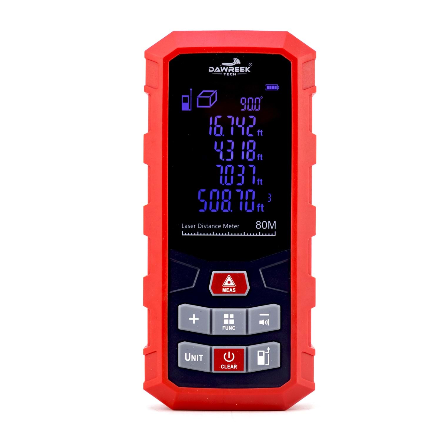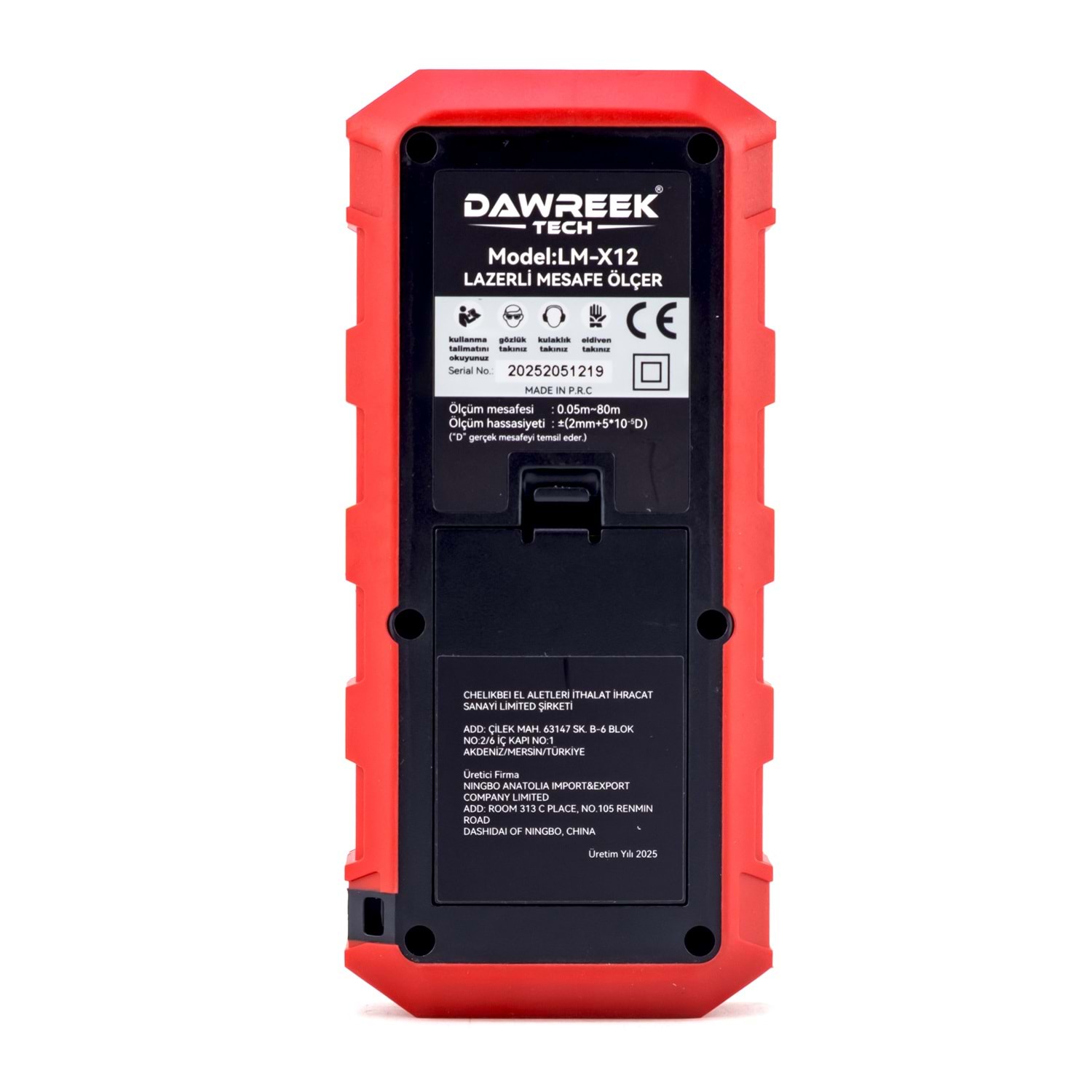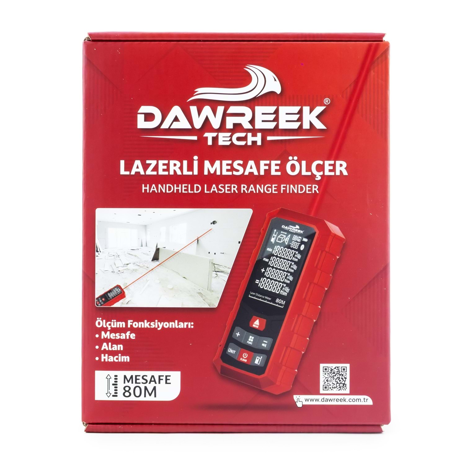 DAWREEK TECH MESAFE ÖLÇER H01 RED 80 Metre Dijital El Tipi Mesafe Ölçüm Cihazı PL001 MESAFE ÖLÇER H01 RED , iç ve dış mekânlarda hızlı, hassas ve güvenilir mesafe ölçümü yapmak isteyenler için geliştirilmiş dijital el tipi ölçüm cihazıdır. 0.05 m – 80 m ölçüm kapasitesi sayesinde inşaat, tadilat, emlak, dekorasyon ve ev içi ölçümler için idealdir. 2. sınıf lazer teknolojisi ile donatılan bu lazer metre, ölçümleri yalnızca 0.25 saniyede gerçekleştirerek zamandan tasarruf sağlar. Otomatik kapanma özelliği, pil ömrünü uzatırken, ergonomik ve kompakt tasarımı sayesinde tek elle rahat kullanım sunar. 3 adet AAA alkalin pil ile çalışan MESAFE ÖLÇER H01 RED, 0°C ile +40°C arasındaki sıcaklıklarda sorunsuz şekilde çalışır. Taşınabilir yapısı ve kullanıcı dostu tasarımıyla hem profesyoneller hem de bireysel kullanıcılar için ideal bir çözümdür. Öne Çıkan Özellikler •80 metreye kadar lazerli mesafe ölçümü •Dijital, hızlı ve hassas ölçüm •El tipi, kompakt ve hafif tasarım •Enerji tasarruflu otomatik kapanma •İnşaat, emlak ve ev kullanımı için uygun Teknik Bilgiler •Lazer Sınıfı: 2. Sınıf •Ölçüm Aralığı: 0.05 m – 80 m •Ölçüm Süresi: 0.25 sn •Pil: 3 × 1.5V AAA Alkalin •Lazer Kapanma: 30 sn •Cihaz Kapanma: 180 sn •Çalışma Sıcaklığı: 0°C ~ +40°C