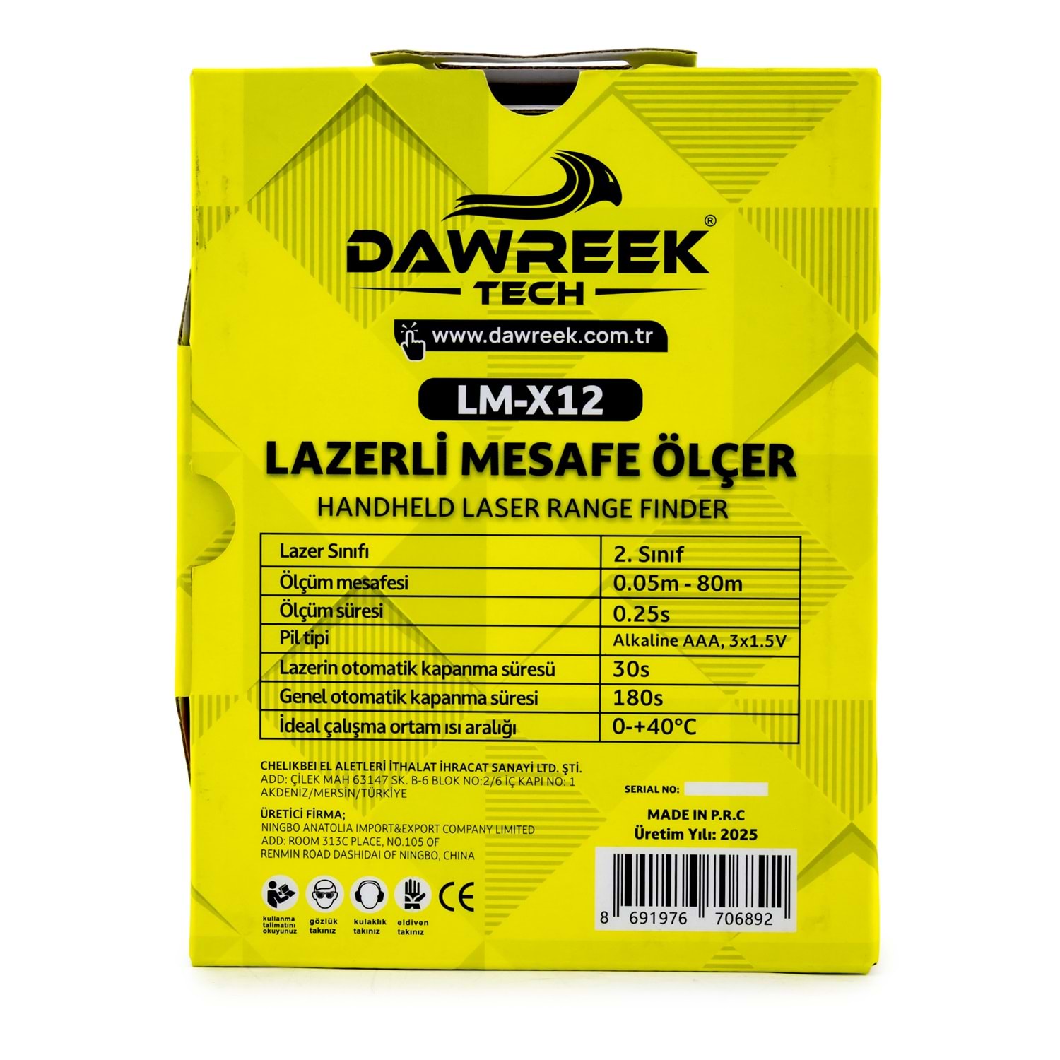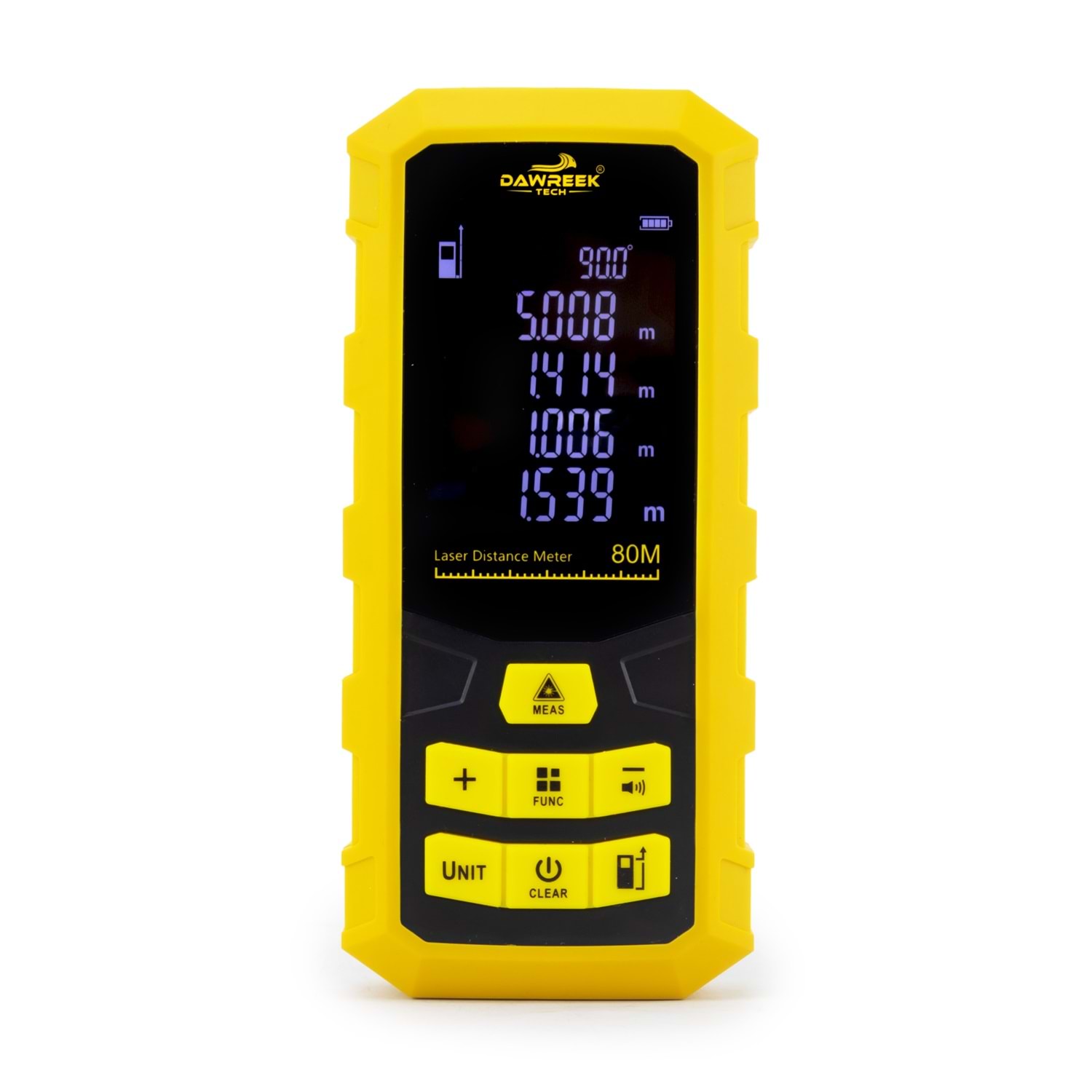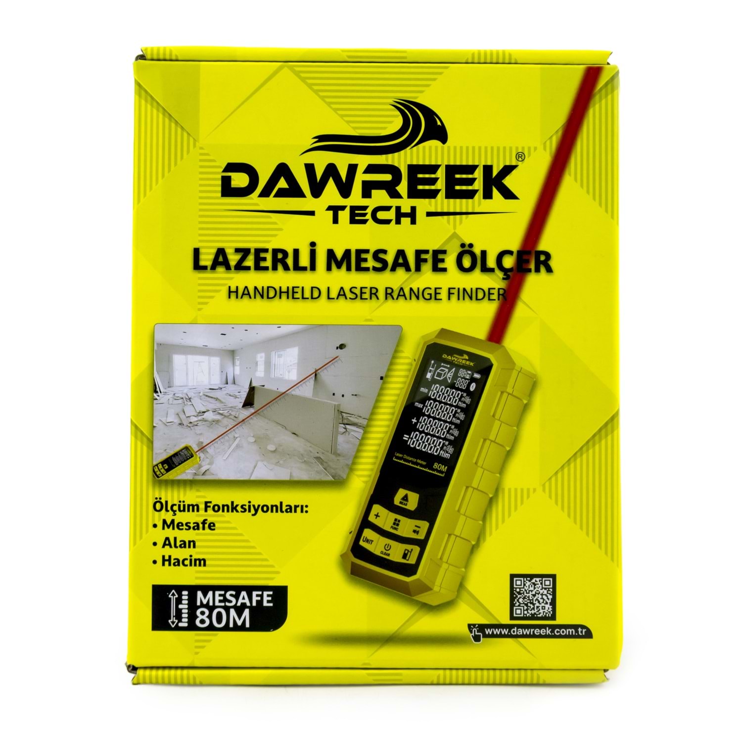 DAWREEK TECH MESAFE ÖLÇER H01 YELLOW 80 Metre Dijital El Tipi Mesafe Ölçüm Cihazı PL002 MESAFE ÖLÇER H01 YELLOW, iç ve dış mekânlarda hızlı, hassas ve güvenilir mesafe ölçümü yapmak isteyenler için geliştirilmiş dijital el tipi ölçüm cihazıdır. 0.05 m – 80 m ölçüm kapasitesi sayesinde inşaat, tadilat, emlak, dekorasyon ve ev içi ölçümler için idealdir. 2. sınıf lazer teknolojisi ile donatılan bu lazer metre, ölçümleri yalnızca 0.25 saniyede gerçekleştirerek zamandan tasarruf sağlar. Otomatik kapanma özelliği, pil ömrünü uzatırken, ergonomik ve kompakt tasarımı sayesinde tek elle rahat kullanım sunar. 3 adet AAA alkalin pil ile çalışan MESAFE ÖLÇER H01 YELLOW, 0°C ile +40°C arasındaki sıcaklıklarda sorunsuz şekilde çalışır. Taşınabilir yapısı ve kullanıcı dostu tasarımıyla hem profesyoneller hem de bireysel kullanıcılar için ideal bir çözümdür. Öne Çıkan Özellikler •80 metreye kadar lazerli mesafe ölçümü •Dijital, hızlı ve hassas ölçüm •El tipi, kompakt ve hafif tasarım •Enerji tasarruflu otomatik kapanma •İnşaat, emlak ve ev kullanımı için uygun Teknik Bilgiler •Lazer Sınıfı: 2. Sınıf •Ölçüm Aralığı: 0.05 m – 80 m •Ölçüm Süresi: 0.25 sn •Pil: 3 × 1.5V AAA Alkalin •Lazer Kapanma: 30 sn •Cihaz Kapanma: 180 sn •Çalışma Sıcaklığı: 0°C ~ +40°C