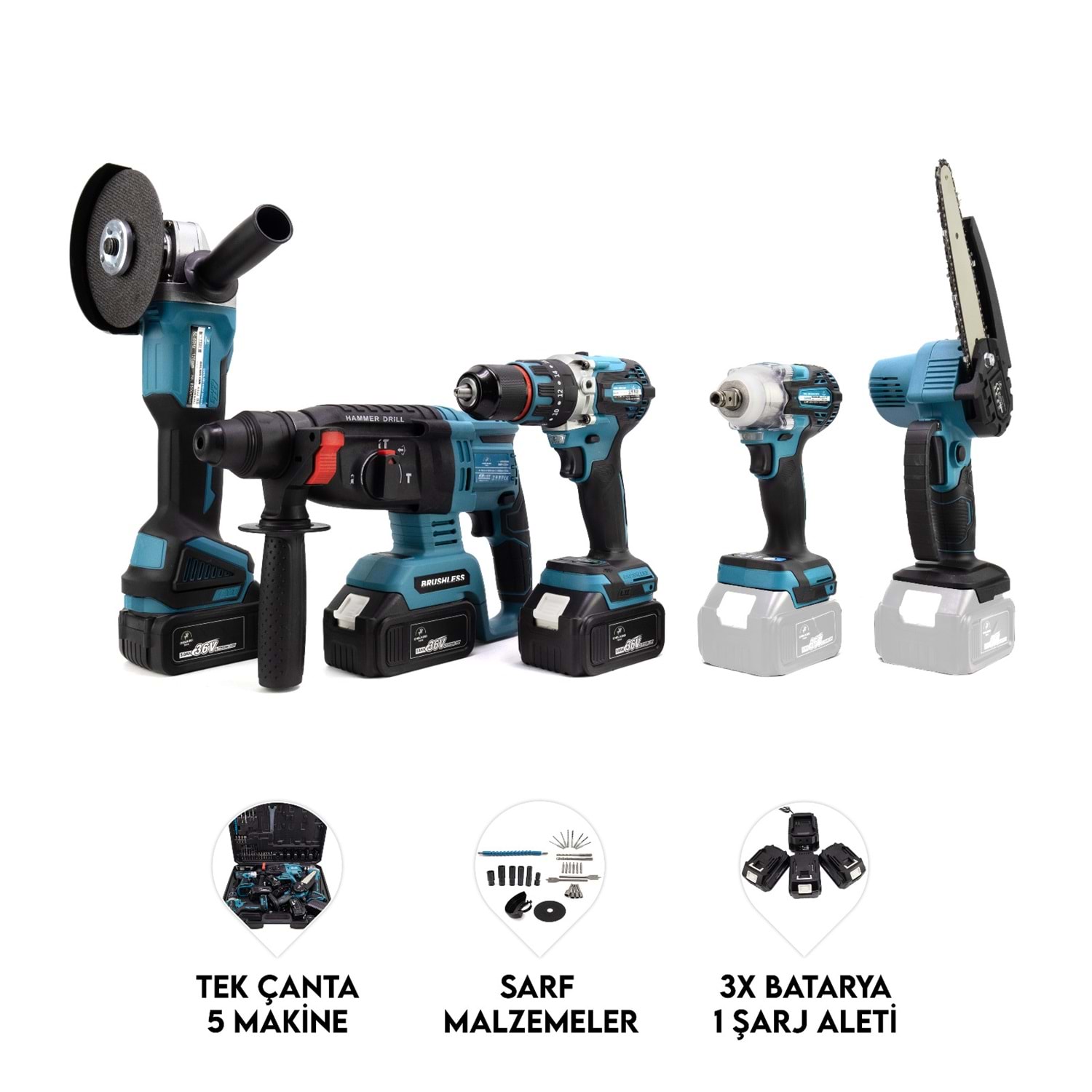 Beşli Set MK350 (Budama Testeresi 10mm Çelik Mandren+ Somun Sıkma+ Şarjlı Spral+Şarjlı Hilti) BT0144 Bu kapsamlı güç aletleri seti, evdeki ve profesyonel projelerinizde ihtiyaç duyduğunuz tüm araçları içerir. Set, yüksek performanslı bir matkap, darbeli vidalama makinesi, daire testere ve çeşitli aksesuarları (piller, matkap uçları, testere bıçakları) içermektedir. Dayanıklı ve uzun ömürlü bu aletler, her türlü inşaat, DIY projeleri ve ev geliştirme işleri için idealdir. Özellikler: Matkap: Güçlü motoru ve ergonomik tasarımı ile her türlü yüzeyde delme işlemlerini kolayca yapabilirsiniz. Darbeli Vidalama Makinesi: Yüksek tork gücü ile vidalama işlemlerini zahmetsizce tamamlayın. Daire Testere: Hassas kesimler için mükemmel, güçlü ve güvenilir. Aksesuarlar: Çeşitli matkap uçları, testere bıçakları ve yedek piller ile birlikte gelir . Neden Bu Seti Tercih Etmelisiniz? Yüksek Performans: Tüm aletler, en zorlu işler için bile yeterli güce sahiptir. Kullanım Kolaylığı: Ergonomik tasarımları sayesinde uzun süreli kullanımlarda bile rahatlık sağlar. Dayanıklılık: Kaliteli malzemelerden üretilmiş olup, uzun ömürlü kullanım sunar. Bu set, hem profesyoneller hem de DIY meraklıları için mükemmel bir seçimdir. Şimdi sipariş verin ve projelerinizi bir üst seviyeye taşıyın!
