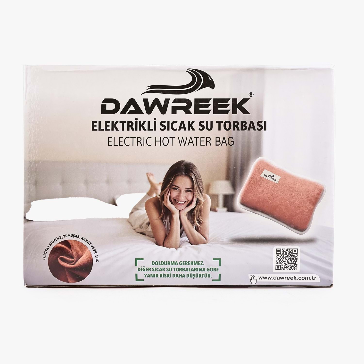 ELEKTRİKLİ SICAK SU TORBASI BROWN ET02K Dawreek elektrikli sıcak su torbası, soğuk havalarda ve ağrılı bölgelerde hızlı ve güvenli ısınma sağlar. Yaklaşık 15 dakikada hazır hale gelir, otomatik güç kesme özelliği sayesinde güvenle kullanılır. Yumuşak peluş kılıfı ile cilde temas ettiğinde konfor sunar ve uzun süre ısı muhafazası yapar. Günlük kullanım için pratik ve şık bir çözümdür. Öne Çıkan Özellikler: •15 dakikada hızlı ısınma •Otomatik güç kesme (güvenli kullanım) •Uzun süreli ısı koruması •Yumuşak peluş kılıf •Boyun, bel, karın ve sırt için ideal •Pembe, mavi ve kahverengi renk seçenekleri