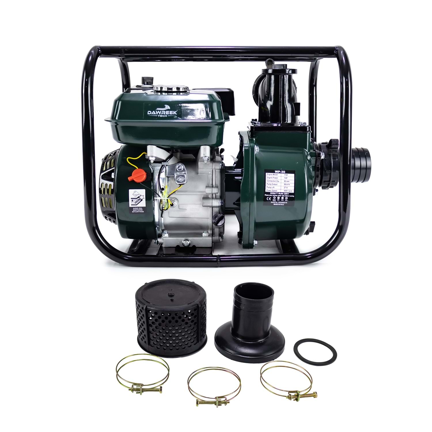 Dawreek Tech 7HP Benzinli Su Pompası – 3” (80 mm) Giriş/Çıkış, 27 m Pompa Mesafesi Güçlü motoru ve yüksek su basma kapasitesiyle Dawreek Tech 7HP Benzinli Su Pompası, tarım, bahçe sulama, inşaat, havuz boşaltma ve su tahliye işlemlerinde üstün performans sunar. 3600 devir/dakika hızındaki motoru sayesinde suyu etkili ve hızlı şekilde transfer eder. Teknik Özellikler: •Pompa Mesafesi: 27 metre •Yakıt Türü: Benzin •Yağ Türü: 10W-30 •Motor Modeli: 170F •Motor Gücü: 7 HP •Devir Hızı: 3600 r.p.m •Giriş/Çıkış Ağzı: 80 mm (3 inç) •Pompa Kapasitesi: 58 m³/saat Avantajları: •Yüksek 7 beygir gücüyle geniş alanlarda kesintisiz su transferi sağlar. •3 inç bağlantı çapı ile yüksek debili su aktarımı yapar. •Sağlam metal gövde ve çelik taşıma çerçevesi sayesinde uzun ömürlü kullanım sunar. •Kolay çalıştırma sistemiyle hızlı başlatma ve güvenli kullanım imkânı verir. •Tarla, bahçe, inşaat sahası ve acil su tahliyesi gibi birçok alanda kullanılabilir. Kullanım Tavsiyesi: Cihazı ilk çalıştırmadan önce motor yağı (10W-30) ve yakıt seviyesini mutlaka kontrol edin. Düzenli bakım ile uzun süre yüksek performans sağlar.